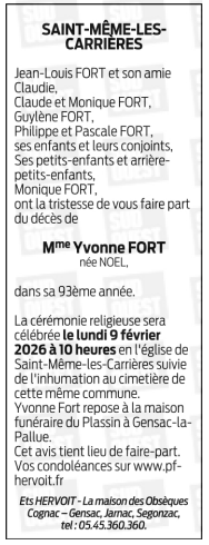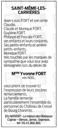 de Madame Yvonne FORT née NOËL
