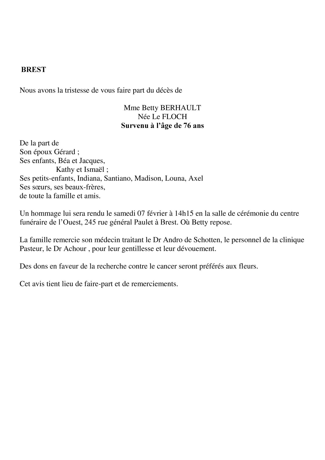 de Madame Elisabeth BERHAULT née LE FLOCH