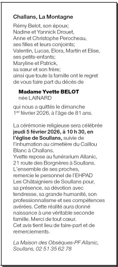 Cet espace « condoléances » est dédié à la mémoire de Madame Yvette BELOT née LAINARD.
