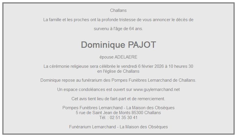 Cet espace « condoléances » est dédié à la mémoire de Madame Dominique PAJOT.