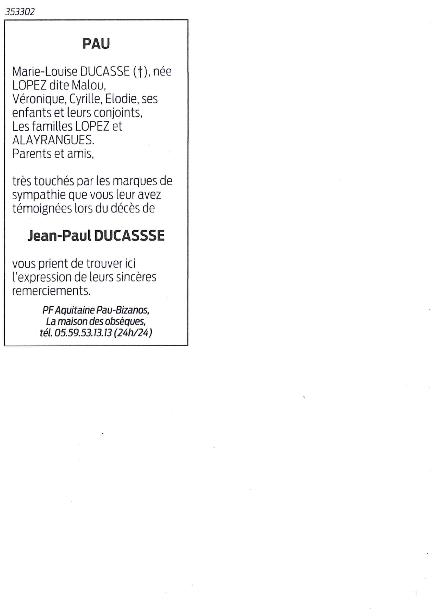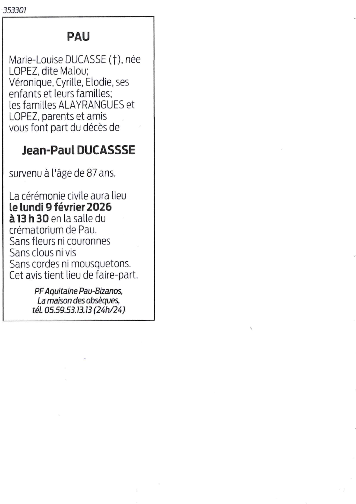 Cet espace « condoléances » est dédié à la mémoire de Monsieur Jean-Paul DUCASSE.