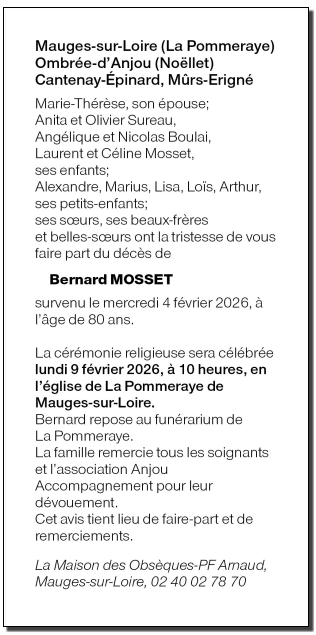 Décédé à Angers (49000) le mercredi 4 février 2026