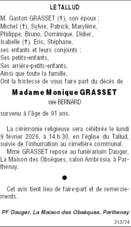 de Madame Monique GRASSET née BERNARD