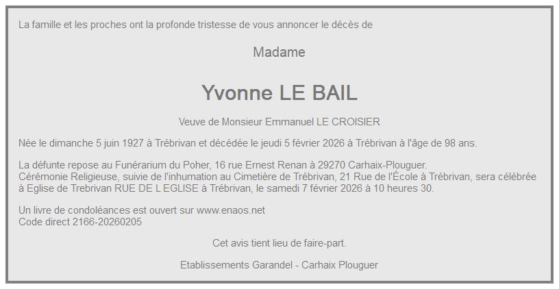 de Madame Yvonne LE CROISIER née LE BAIL