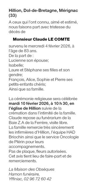 Décédé à Hillion (22120) le mercredi 4 février 2026