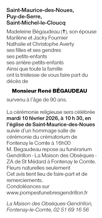 Cet espace « condoléances » est dédié à la mémoire de Monsieur René BEGAUDEAU.