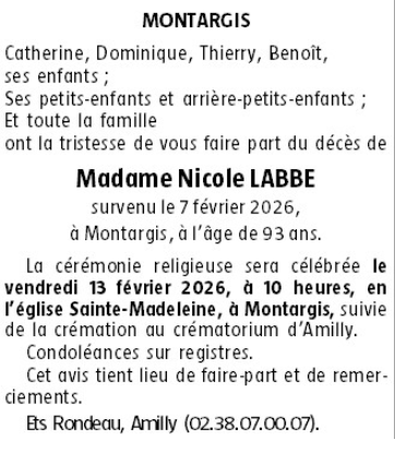 de Madame Nicole LABBE née GRANDCLAUDE