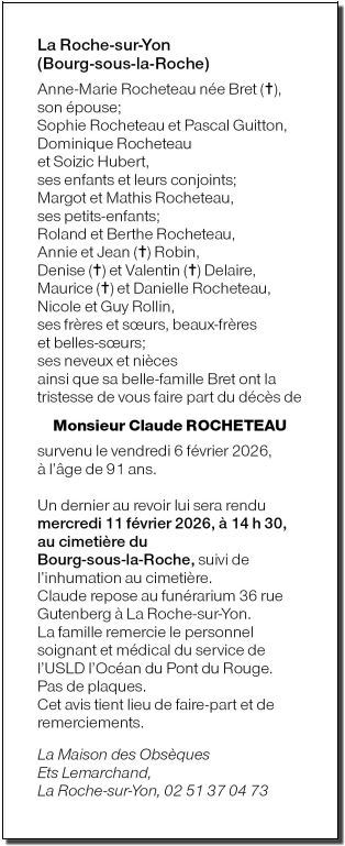 Cet espace « condoléances » est dédié à la mémoire de Monsieur Claude ROCHETEAU.