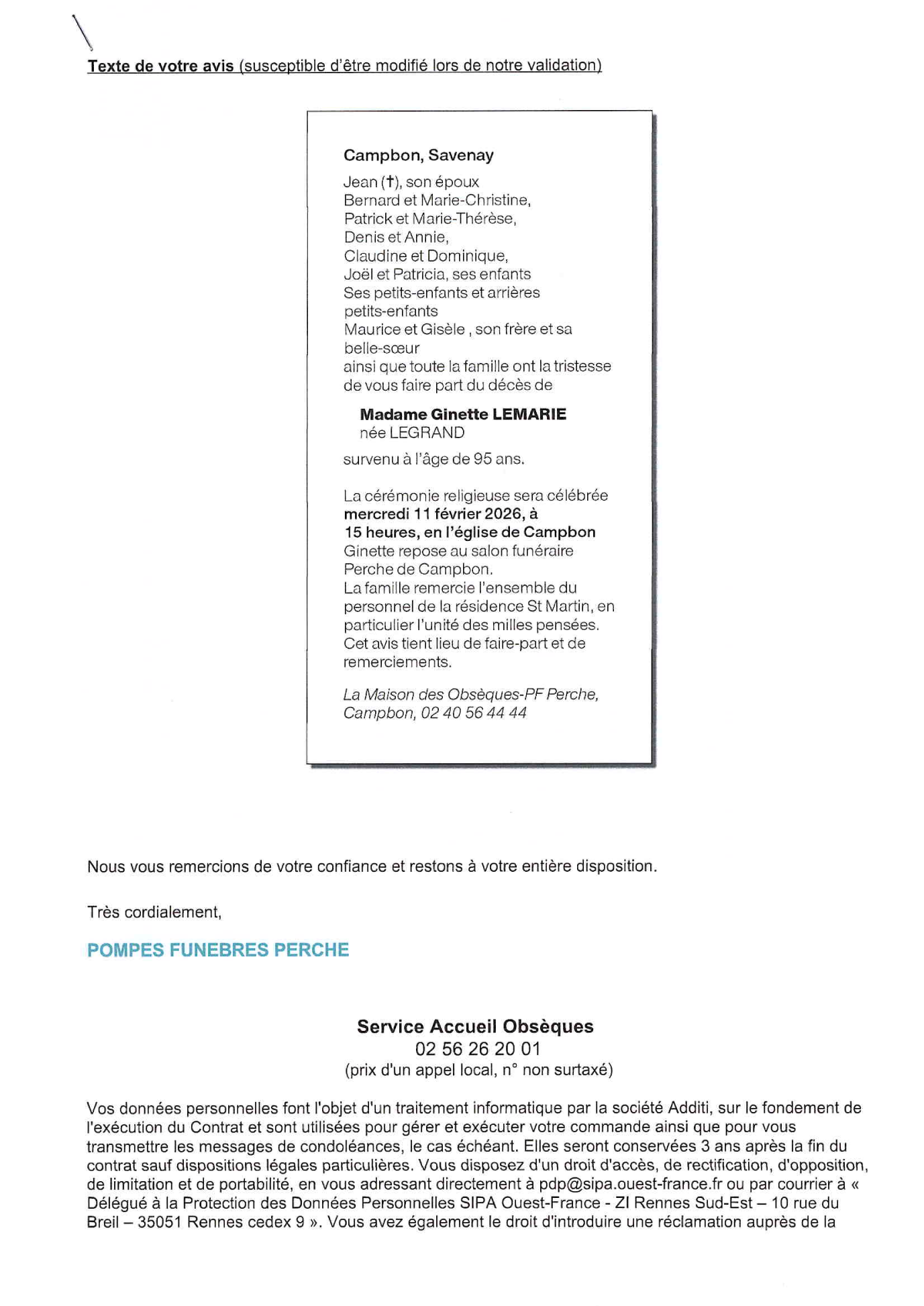 Cet espace « condoléances » est dédié à la mémoire de Madame GINETTE LEMARIE.