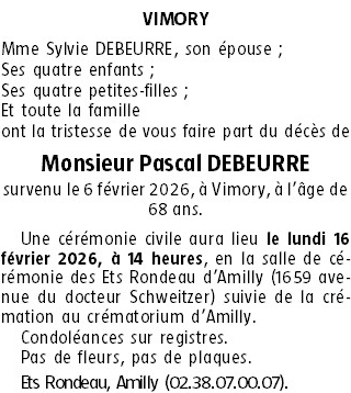 Cet espace « condoléances » est dédié à la mémoire de Monsieur Pascal DEBEURRE.