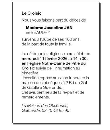 de Madame Josseline JAN née BAUDRY