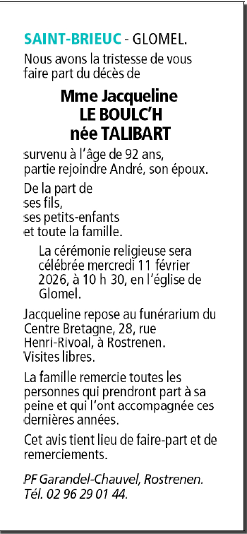 de Madame Jacqueline LE BOULC'H née TALIBART