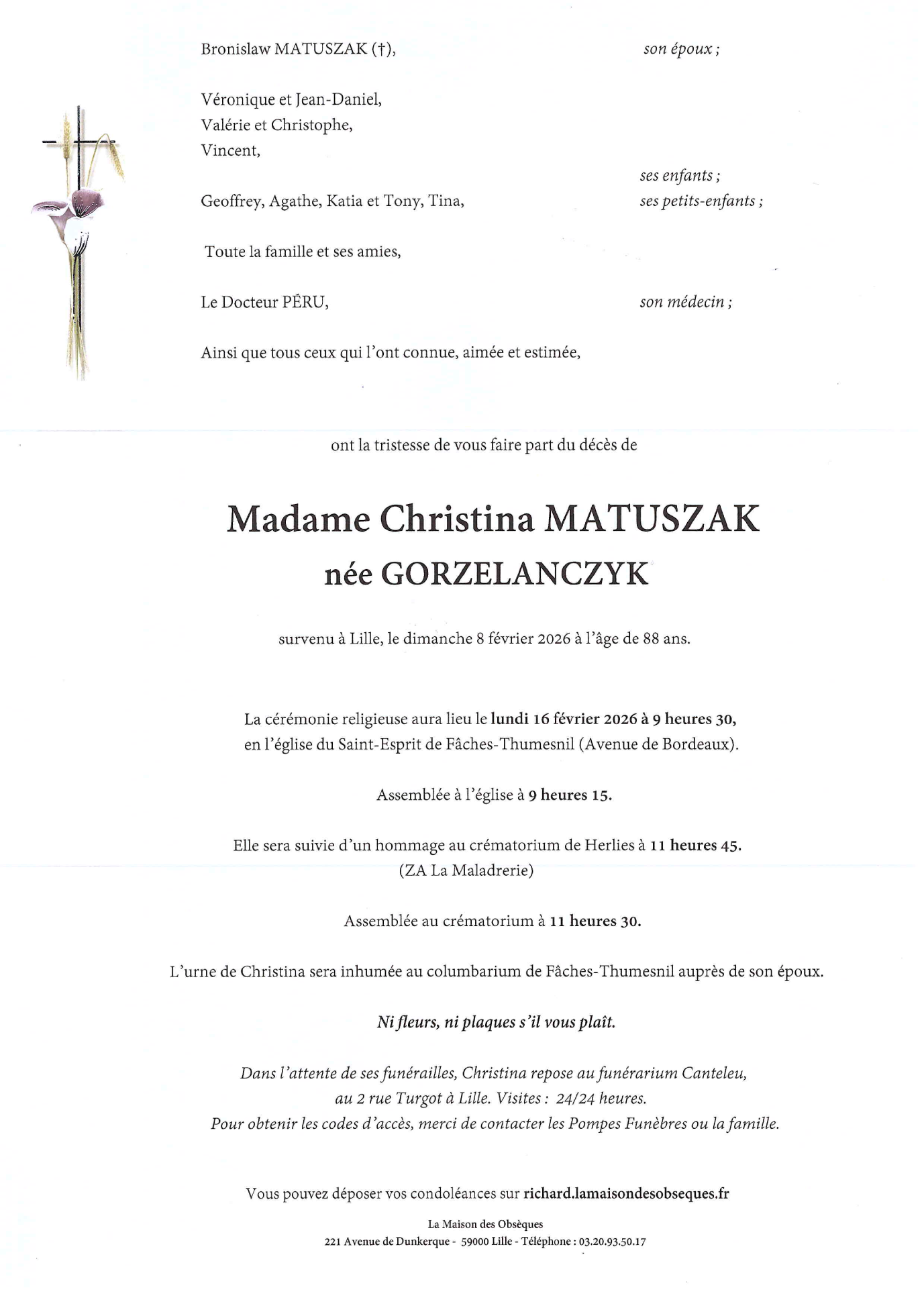 Cet espace « condoléances » est dédié à la mémoire de Madame Christina GORZELANCZYK.