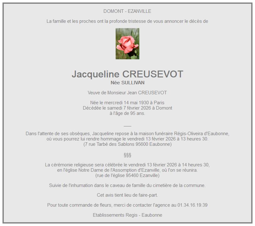 de Madame Jacqueline CREUSEVOT née SULLIVAN