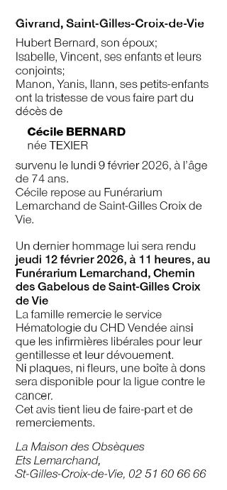 Cet espace « condoléances » est dédié à la mémoire de Madame Cécile BERNARD née TEXIER.