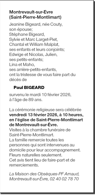 Décédé à Cholet (49300) le mardi 10 février 2026