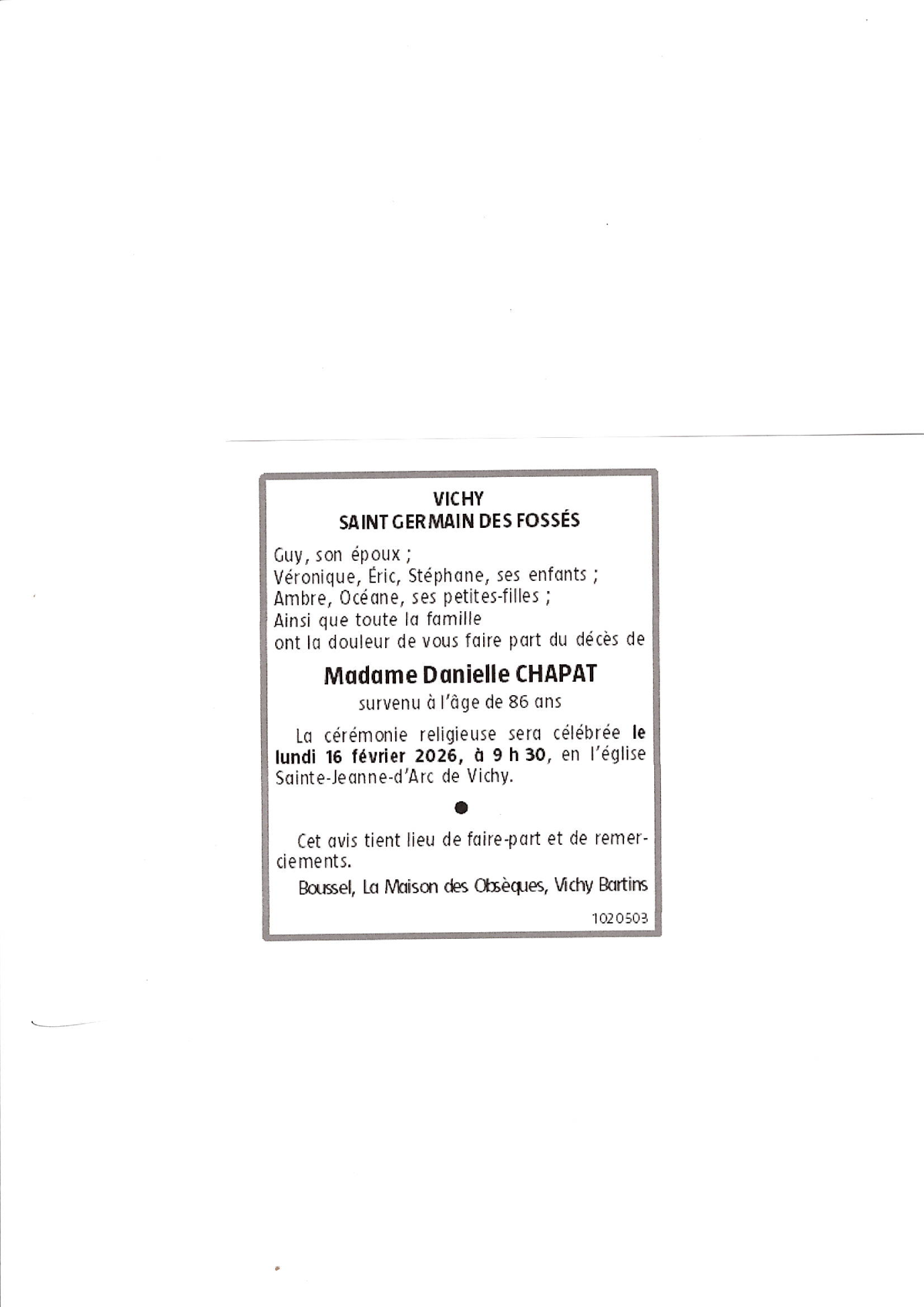 Cet espace « condoléances » est dédié à la mémoire de Madame Danielle CHAPAT née COMTE.