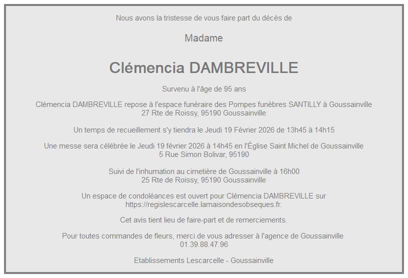 Cet espace « condoléances » est dédié à la mémoire de Madame Clémencia DAMBREVILLE.