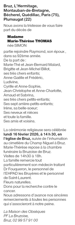 de Madame Marie-Thérèse THOMAS née SIMON