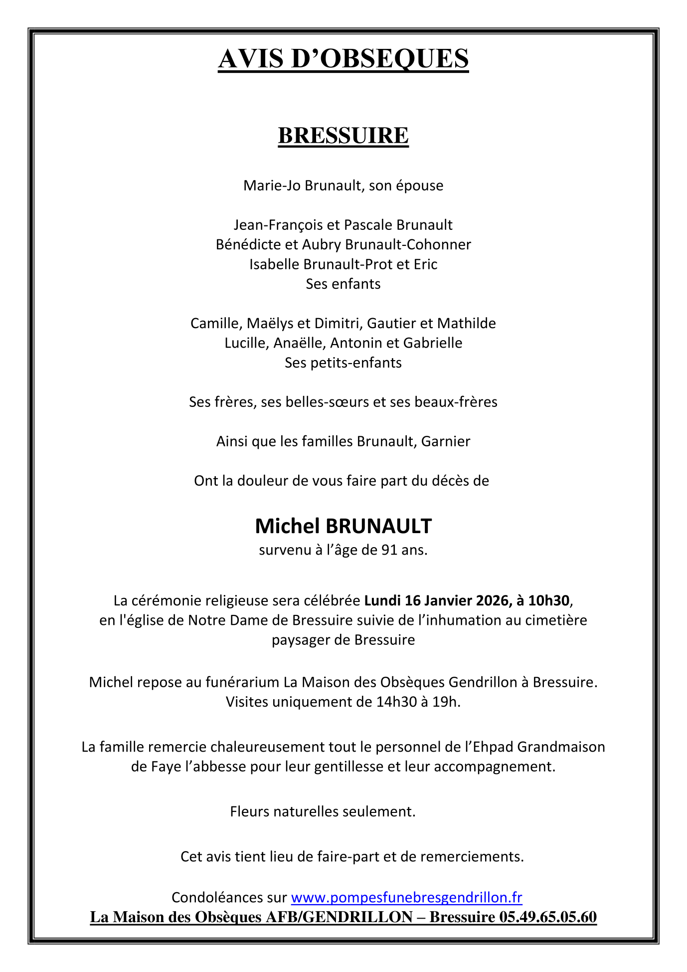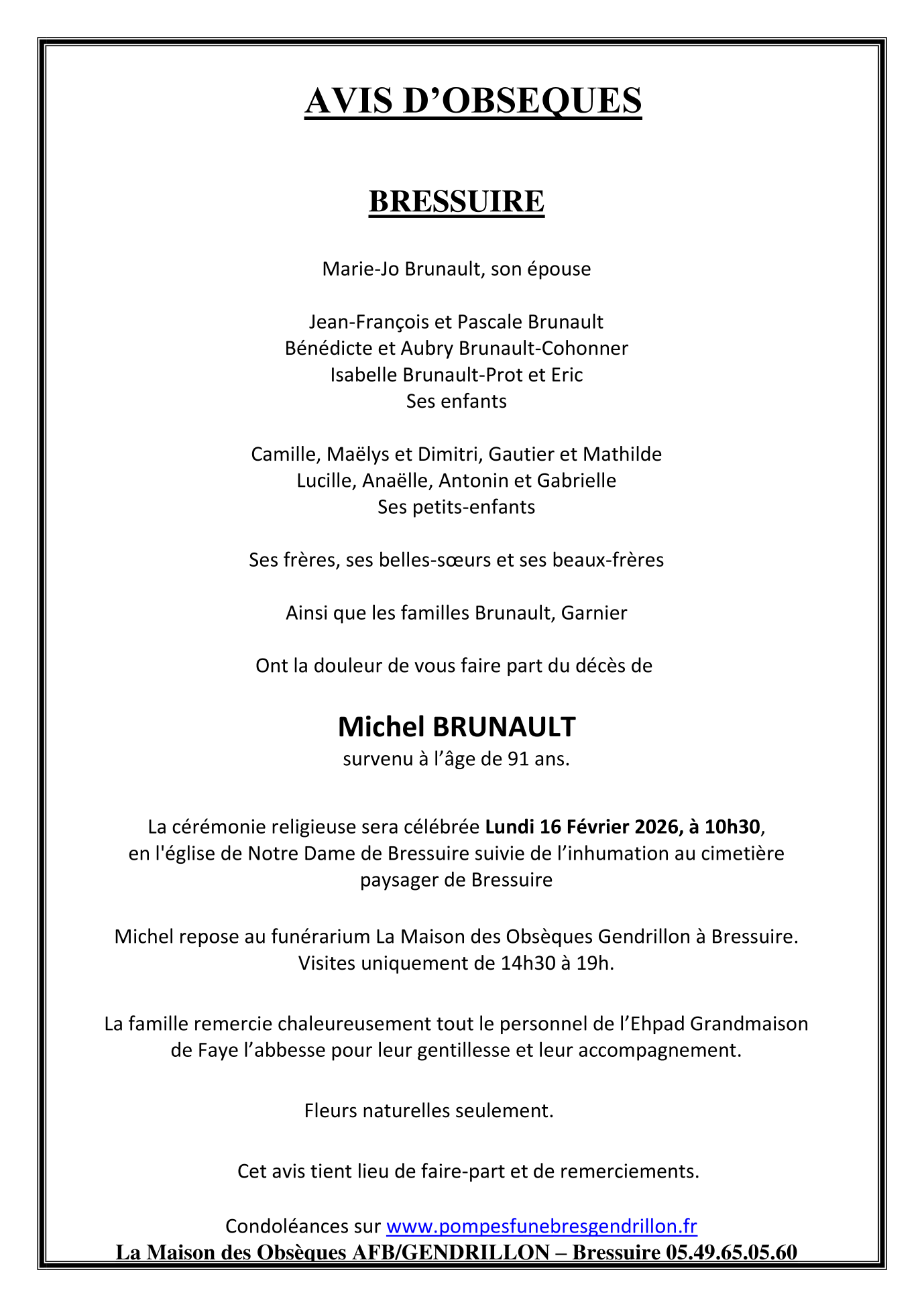 Cet espace « condoléances » est dédié à la mémoire de Monsieur Michel BRUNAULT.