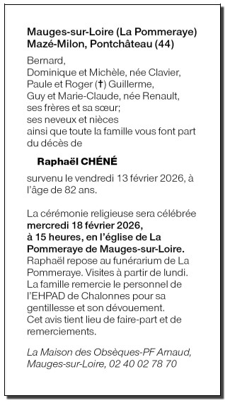 Cet espace « condoléances » est dédié à la mémoire de Monsieur Raphaël CHÉNÉ.