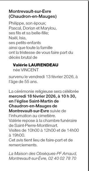 de Madame Valérie LAURENDEAU née VINCENT