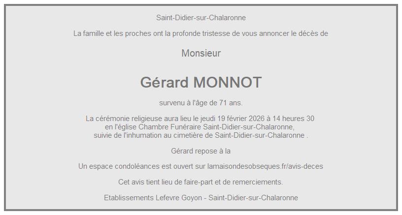 de Monsieur Gérard MONNOT