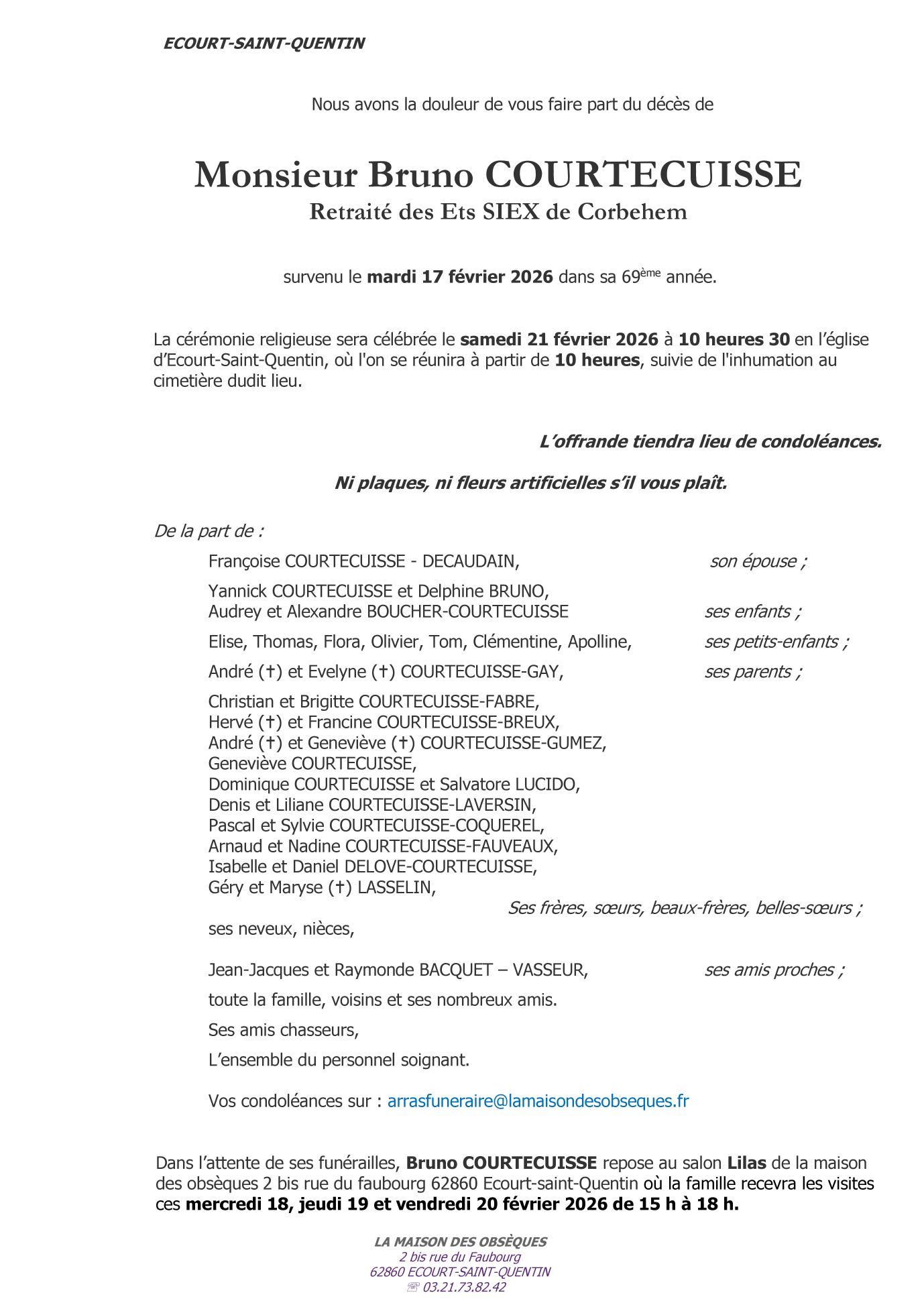 Cet espace « condoléances » est dédié à la mémoire de Monsieur Bruno COURTECUISSE.