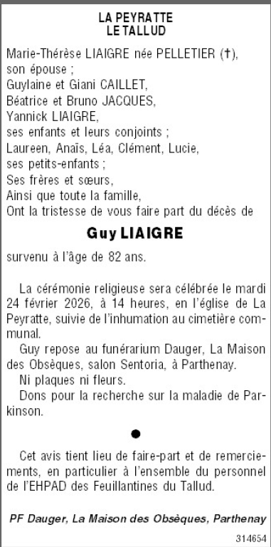 Cet espace « condoléances » est dédié à la mémoire de Monsieur Guy LIAIGRE.