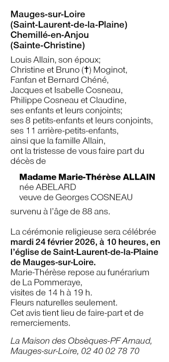 de Madame Marie-Thérèse ALLAIN née ABELARD