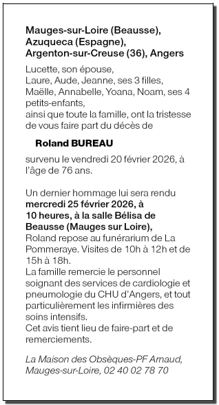 Cet espace « condoléances » est dédié à la mémoire de Monsieur Roland BUREAU.