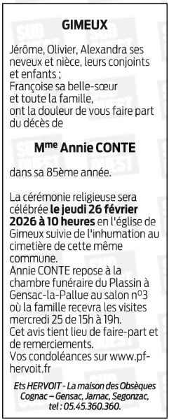 de Madame Annie née CONTE