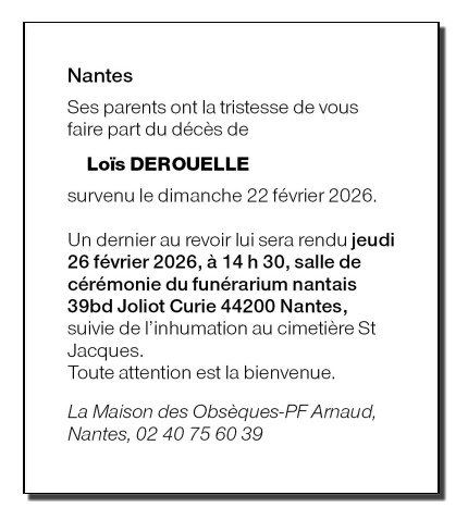 Décédé à Nantes (44000) le dimanche 22 février 2026