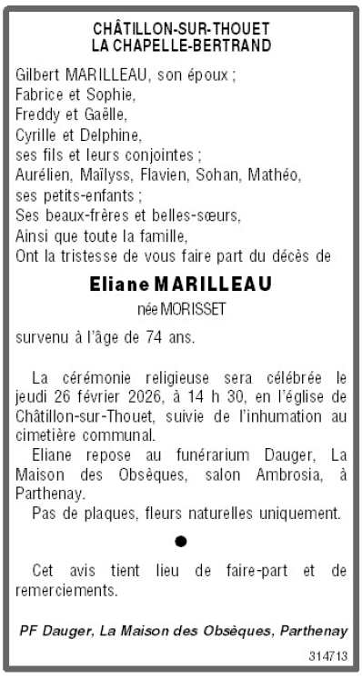 de Madame Eliane MARILLEAU née MORISSET