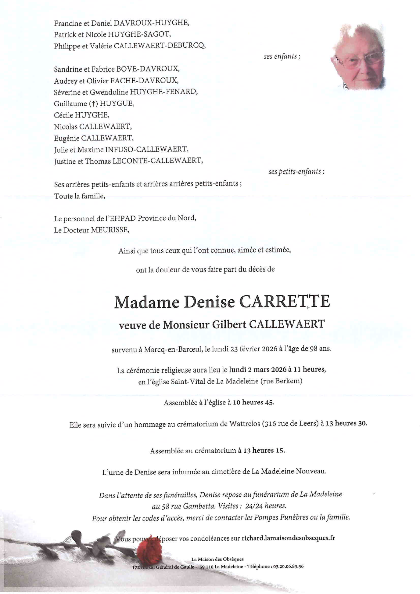 Décédée à Marcq-en-Barœul (59700) le lundi 23 février 2026