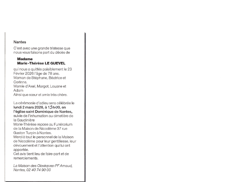 de Madame Marie-Thérèse LE GUÉVEL
