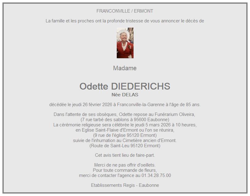 de Madame Odette DIEDERICHS née DELAS