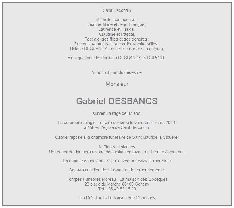 de Monsieur Gabriel DESBANCS