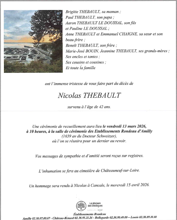 Cet espace « condoléances » est dédié à la mémoire de Monsieur Nicolas THEBAULT.