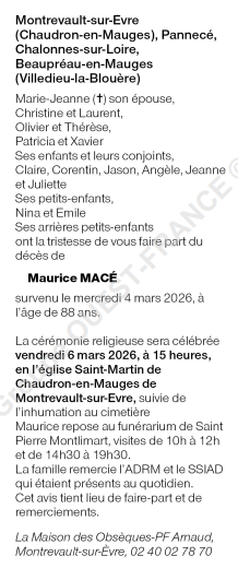 Cet espace « condoléances » est dédié à la mémoire de Monsieur Maurice MACÉ.