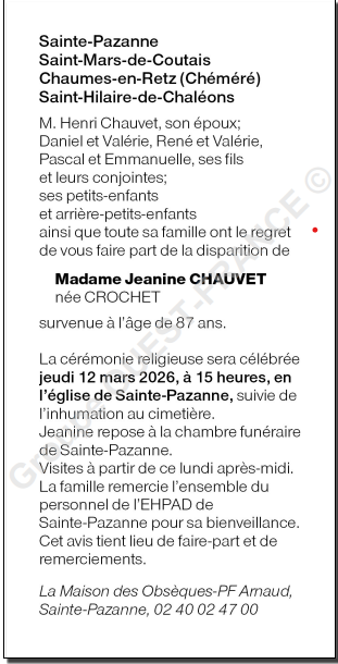 de Madame Jeanine CHAUVET née CROCHET