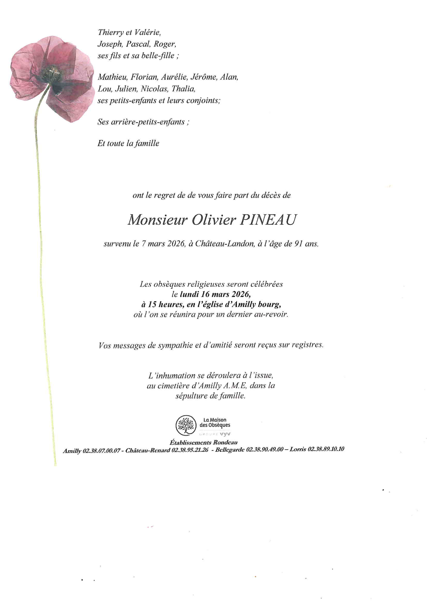 Cet espace « condoléances » est dédié à la mémoire de Monsieur Olivier PINEAU.