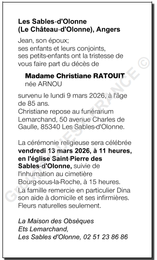de Madame Christiane RATOUIT née ARNOU