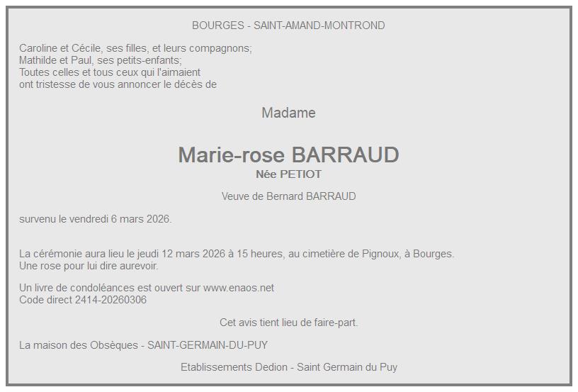 de Madame Marie-rose BARRAUD née PETIOT