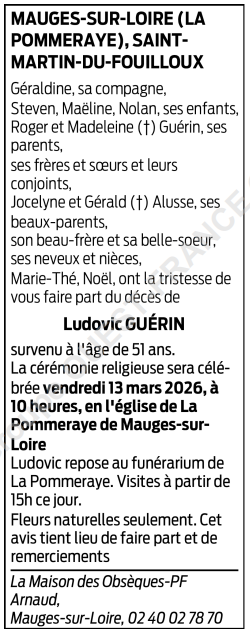 Cet espace « condoléances » est dédié à la mémoire de Monsieur Ludovic GUÉRIN.