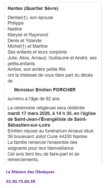 Décédé à Nantes (44000) le jeudi 12 mars 2026