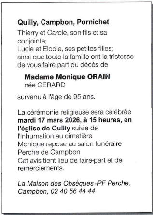 Cet espace « condoléances » est dédié à la mémoire de Monique ORAIN.