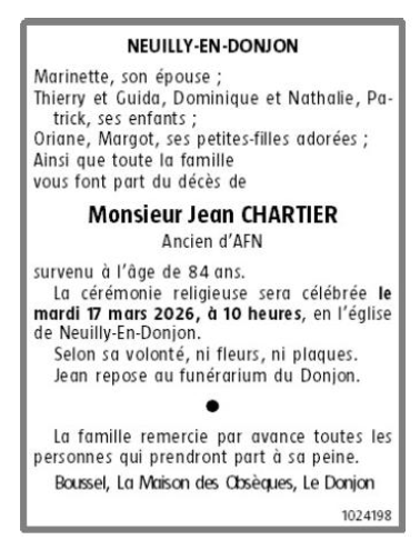 Décédé à Neuilly-en-Donjon (03130) le vendredi 13 mars 2026