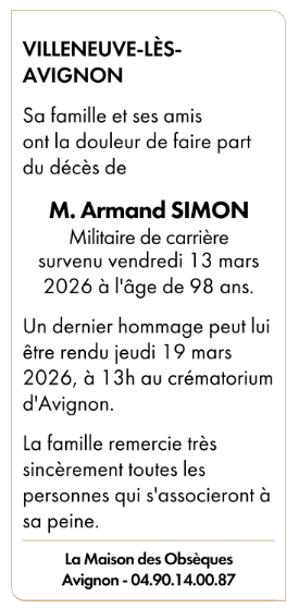 Cet espace « condoléances » est dédié à la mémoire de Monsieur Armand SIMON.