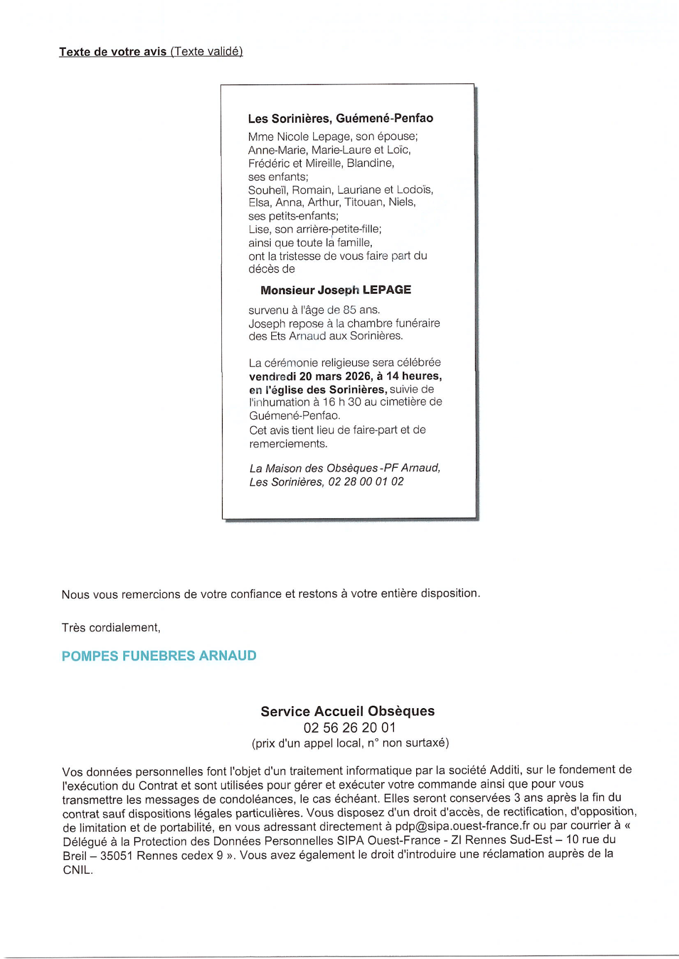 Cet espace « condoléances » est dédié à la mémoire de Monsieur Joseph LEPAGE.